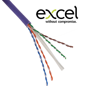 Excel solid Cat6 ethernet cable U/UTP 23AWG LSOH CPR B2ca manufactured and tested to the TIA/EIA 568‐B.2‐1, EN50173‐1 and ISO/ IEC 11801 Cat 6 specifications, 305m or 500m. Each cable consists of 8 colour coded solid copper conductors twisted together to form four pairs.