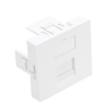 LJ6C-style inserts for 38 mm x 25 mm openings; available in flat and angled designs, with or without spring-loaded shutters; white ABS plastic; accept QUICKPORT™ UTP/shielded jacks or QUICKPORT fiber adapters.
